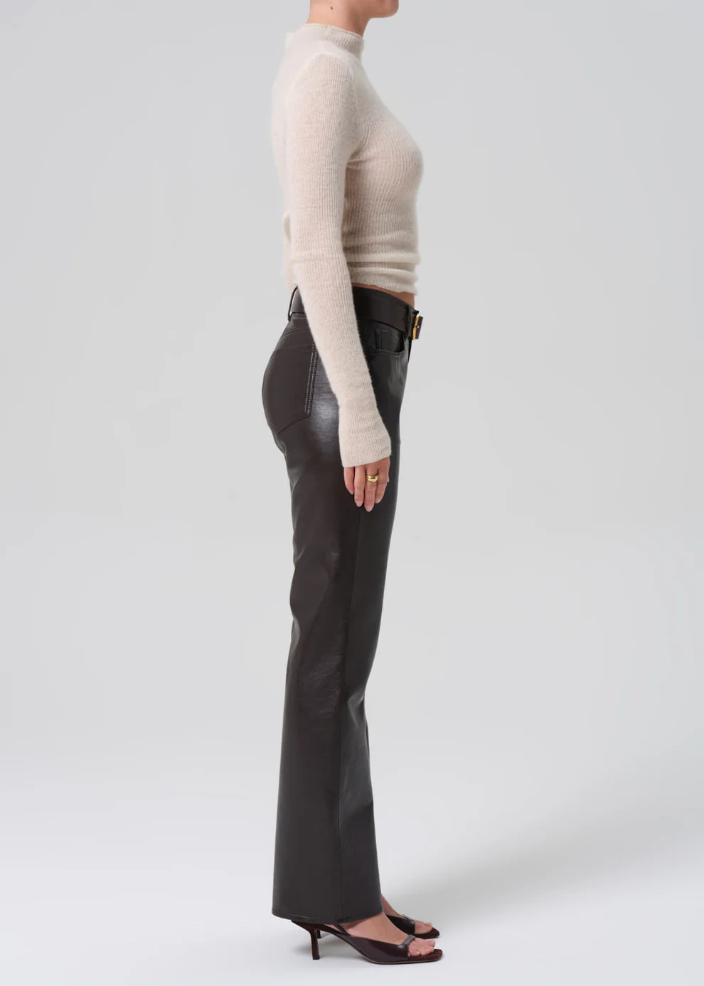 •  A low-rise bootcut pant crafted from buttery recycled leather with slight stretch for ease