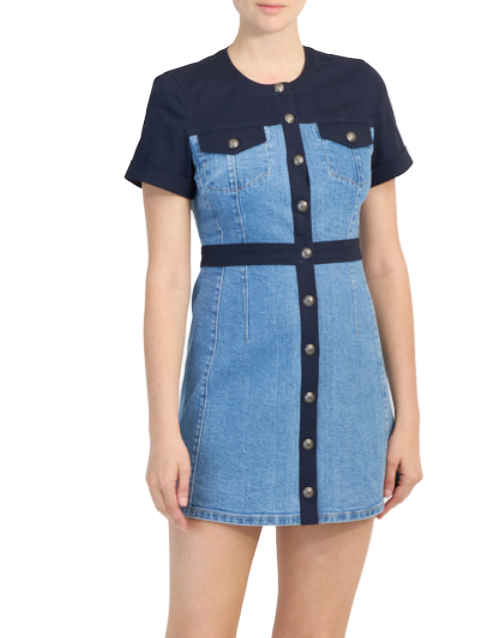 Cinq a Sept Combo Button Front Layla Dress in Navy/Blue Haze