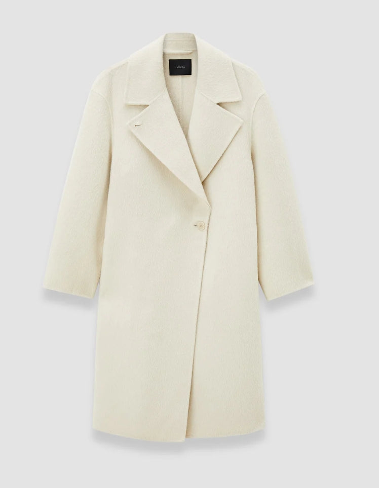 •  The Yves Brushed Double Face Alpaca Coat is a relaxed fit coat, crafted from a luxurious blend of alpaca, wool and silk