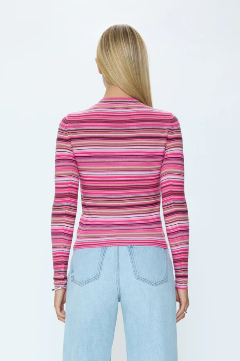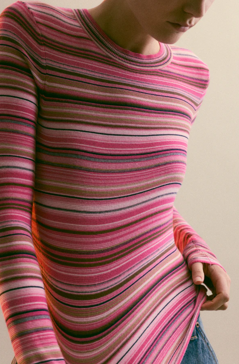 • Balancing softness and structure, the pink and brown multi stripes lend a playful touch, creating a versatile piece that transitions easily from weekday to weekend