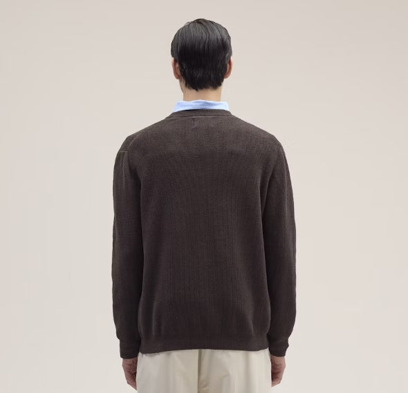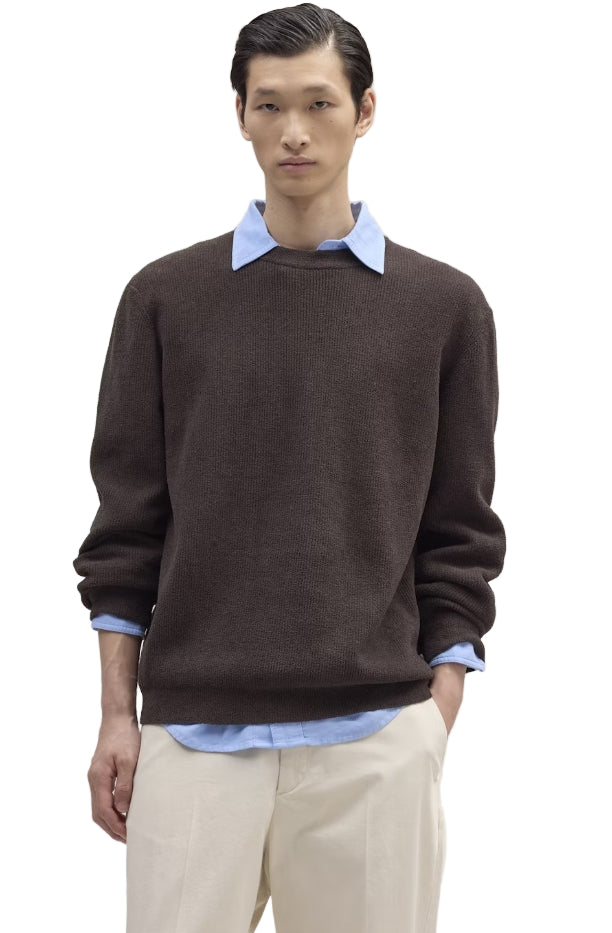 • A soft crewneck sweater crafted in a lightweight polyester blend, designed with a neat rib and fashion detailing along the arm and neckline