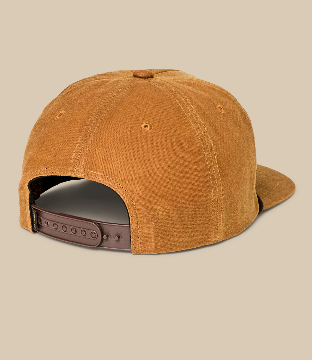 • A classic five-panel cap built with weather-resistant waxed cotton