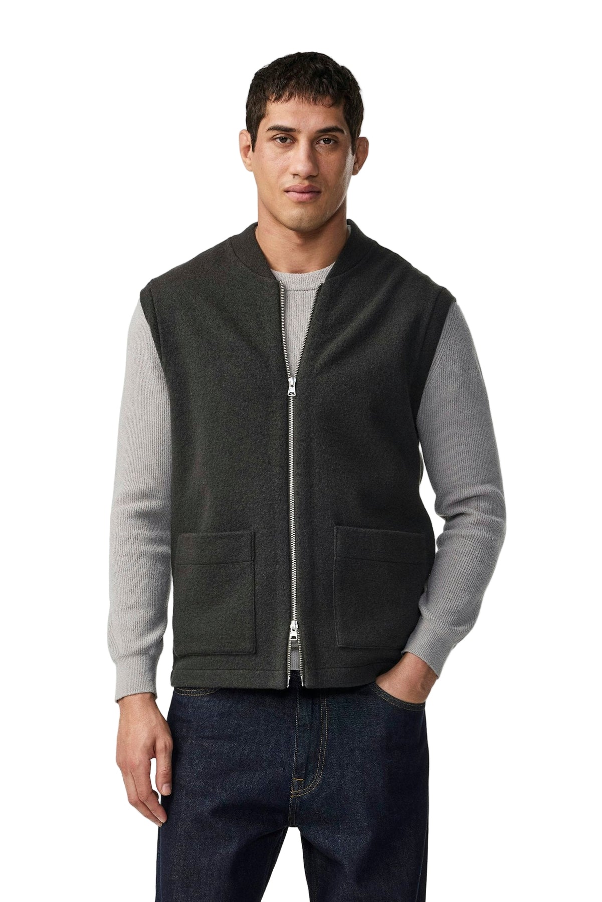 • A zip-up vest crafted in soft-boiled merino wool