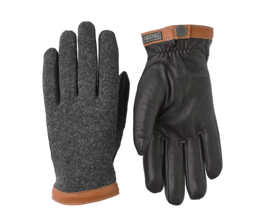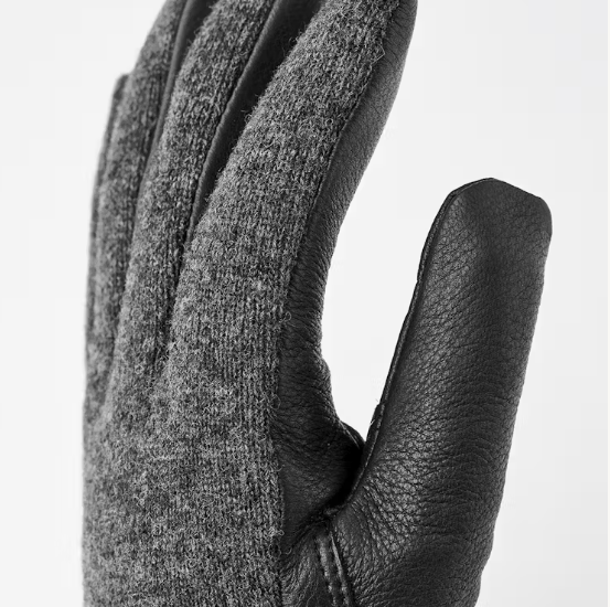 Hestra Deerskin Wool Tricot Glove in Charcoal/Black