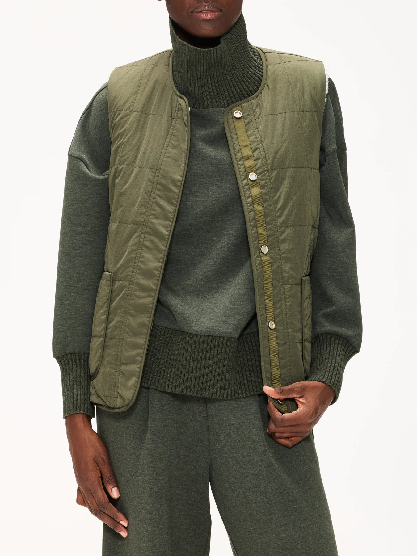 • A reversible gilet with Sherpa and quilted Crinkle Nylon