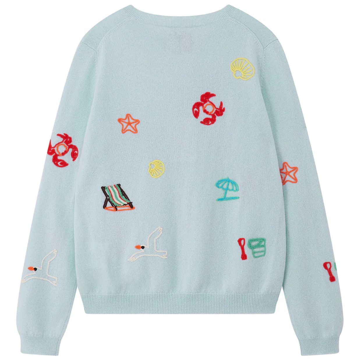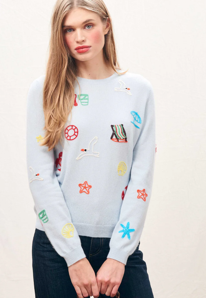 • The essential lightweight cashmere sweater with beach themes to take into the Spring season
