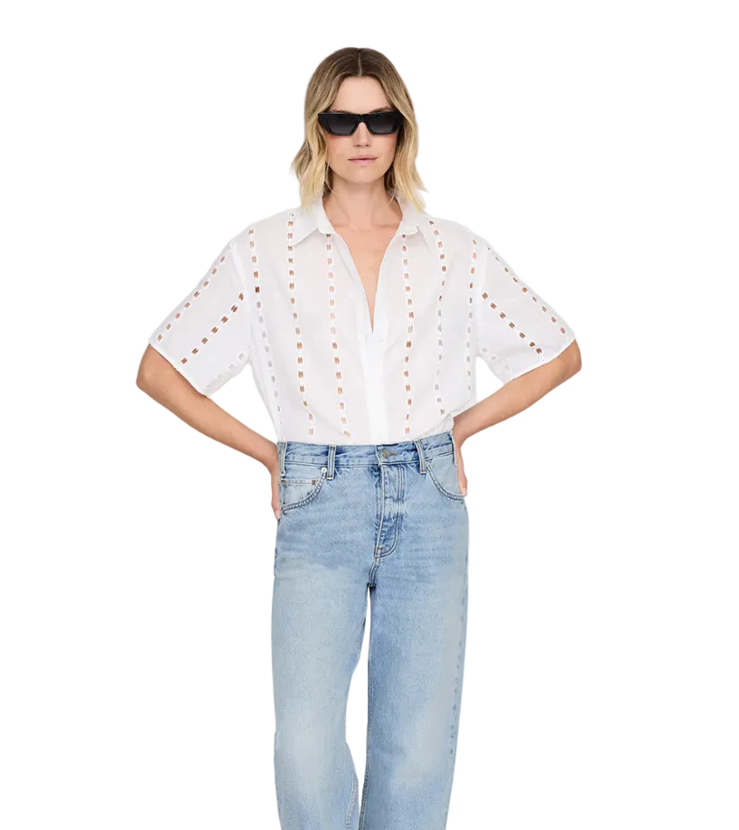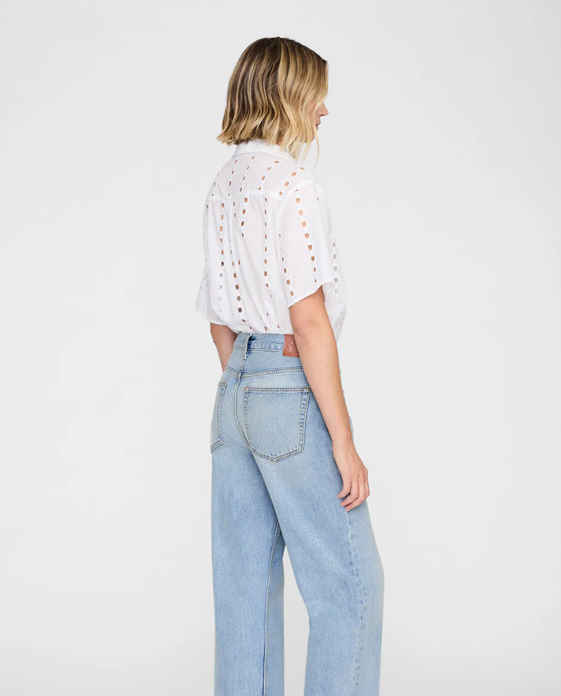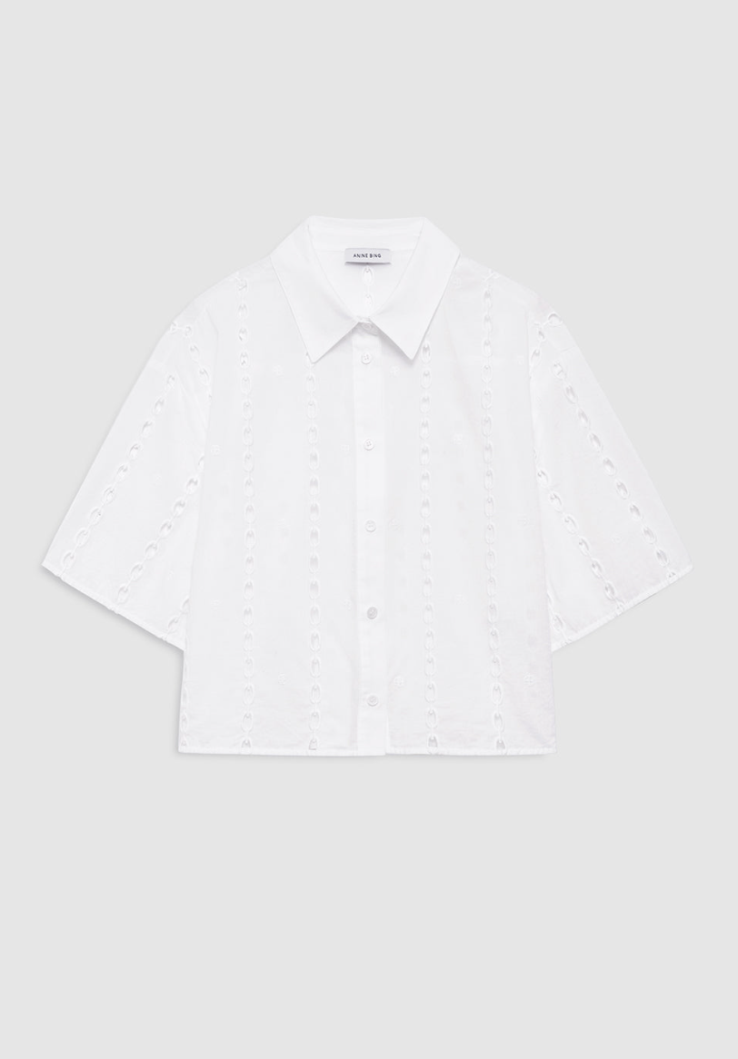 • A boxy cropped shirt crafted from cotton voile with a custom chain link eyelet pattern