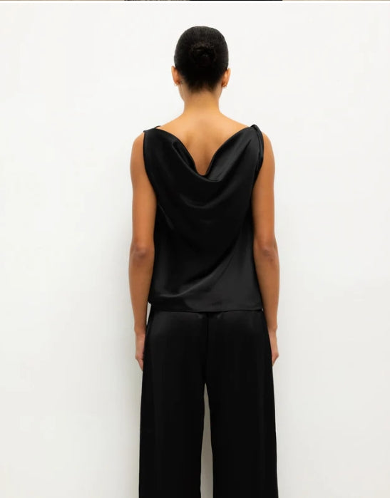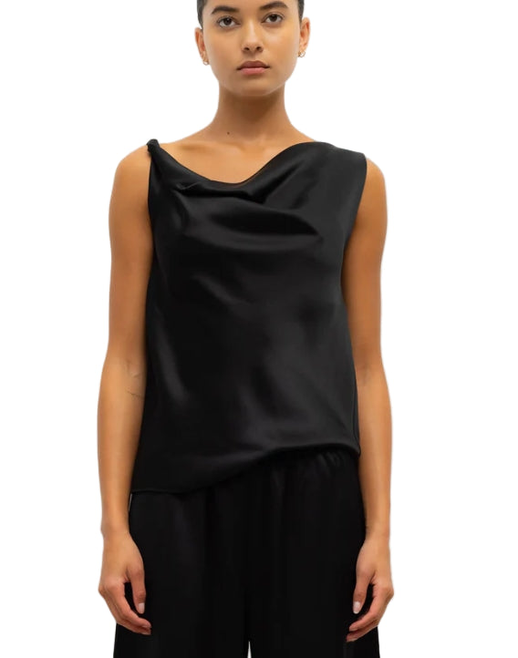- Cut in best-selling, Japanese-crafted Barb Satin, The Barb Shell is a sleeveless top featuring twisted asymmetrical shoulders that drape perfectly