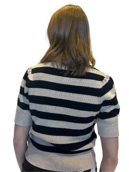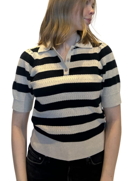 Autumn Cashmere Puff Sleeve Polo in Natural/Navy Blue