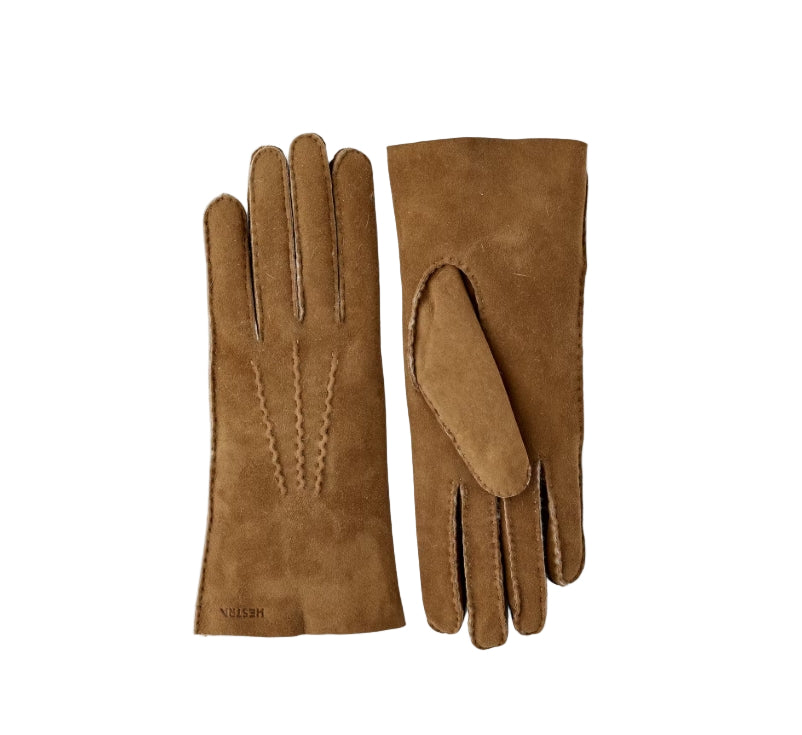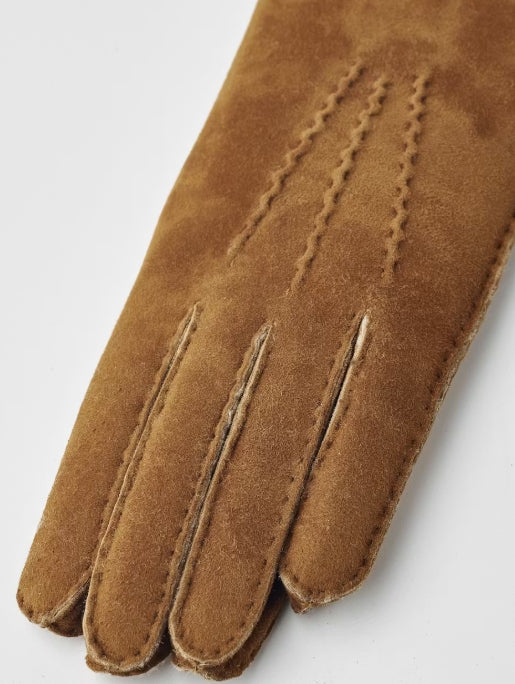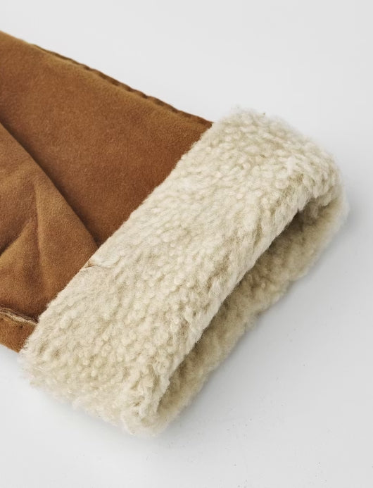 • A timeless design sewn entirely by hand with the suede side turned outwards, while the fluffy lambskin envelops the hand in warmth
