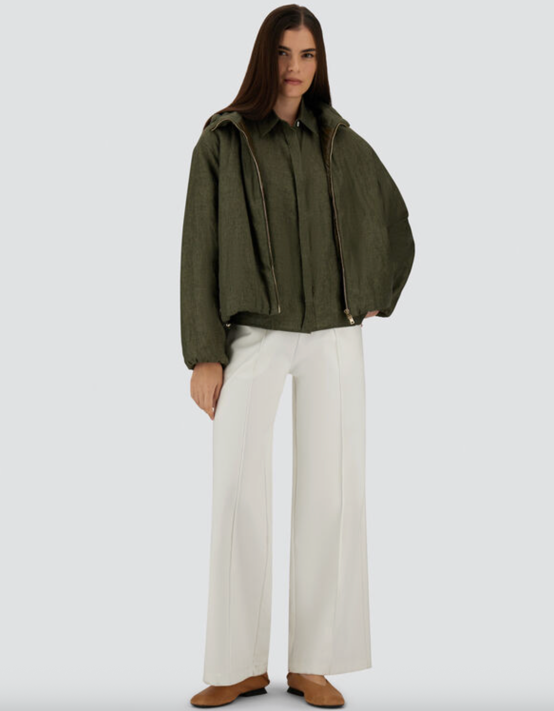 Herno Linen Bomber in Army Green