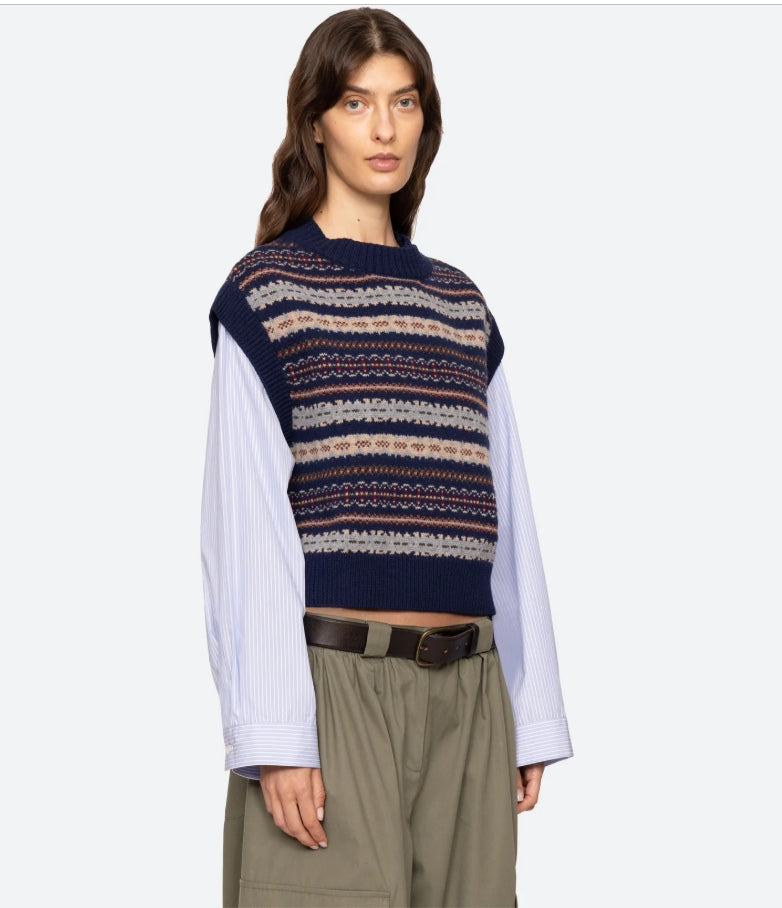 Sea Ciara Fair Isle Knit Combo Longsleeve Top